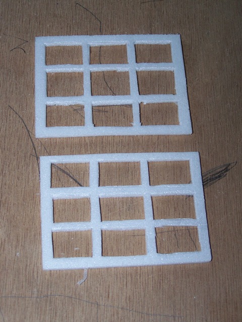 Las paredes las hago con porex de 2 cm. de bolitas porque ira con una capa fina de masilla y pintado de blanco (sin desconches) y las ventanas y puerta principal estan hechas de las bandejas que vienen con los alimentos que compras en los supermercados(de 4mm.)