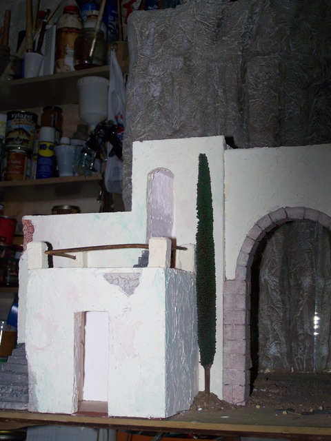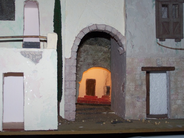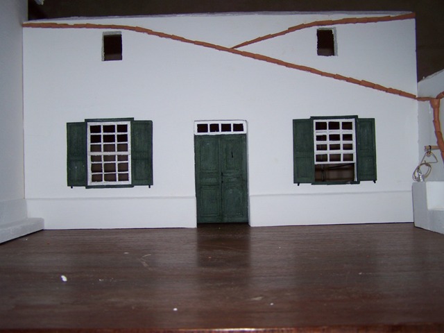Las paredes las hago con porex de 2 cm. de bolitas porque ira con una capa fina de masilla y pintado de blanco (sin desconches) y las ventanas y puerta principal estan hechas de las bandejas que vienen con los alimentos que compras en los supermercados(de 4mm.)