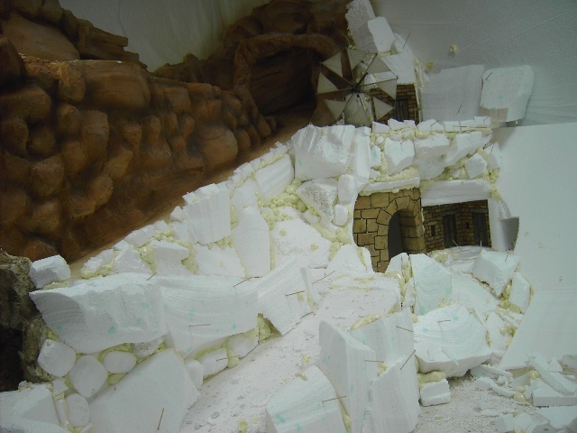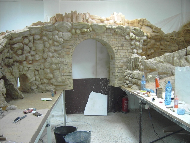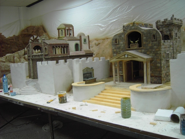 J.DAvid, las últimas fotos son geniales, es todo tan bonito, tan grande, tan bien planteado en los más minimos detalles que es un placer enorme poder veros trabajar y como va avanzando esa obra monumental que estais realizando; me encantaría estar allí y ver "in situ" como trabajais, así es como se aprende de verdad las técnicas y recursos que utilizais los expertos en cada rincón,construcción o callejuela. Cuando termineis, espero verlo en video, pues es tan grande que las fotos, aunque buenas, no abarcan todo el belen.