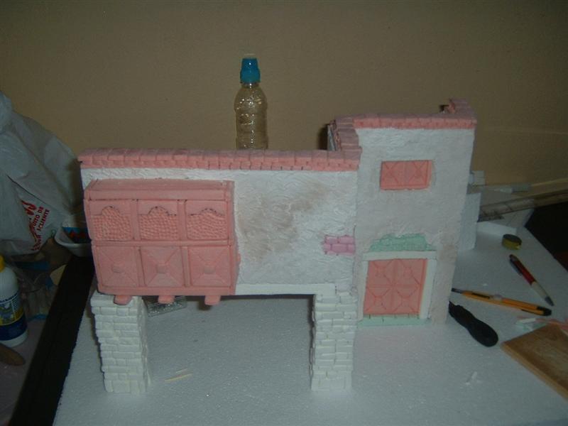 Te esta quedando muy bien, pero como has hecho el balcon? y que pintura usas en las piedras?