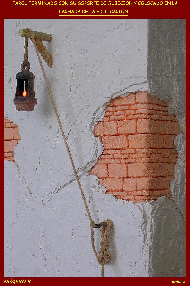 Foto número 8 .- Farol terminado con su soporte de sujeción y colocado en la fachada de la edificación.