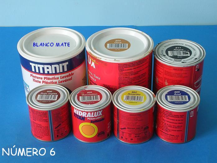 Utilice la pintura plástica al agua satinada de la marca Hidralux excepto el blanco mate que es de la marca Titanit