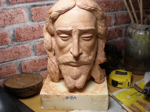 Pues menos mal q Adolfo se ha referido a la tripa de cordero y no a otras "partes", sí, sí, esas ciertas "partes", masculinas concretamente, en las q todos estais pensando jejejejeje. No es broma, un chico q conozco q es imaginero me dijo q en su escuela le había enseñado a difuminar con esto q os estoy contando...Te digo lo mismo a Adolfo, si te decides por policromarlo hazlo con óleos, el color será mucho más elegante, pero si no los has utilizado nunca, a lo mejor los acrílicos son más fáciles de manejar...Yo trabajo con las dos clases, pero sobre lienzo, (lo más "raro" q he hecho a sido sobre cera, en el cirio q ya os enseñé), pero nunca en barro y menos en estas proporciones. Supongo q lo primero q deberías darle sería un tapaporos y una imprimación para trabajar mejor. Ánimo, suerte y al toro, SI NO LO INTENTAS NUNCA SABRÁS EL RESULTADO.