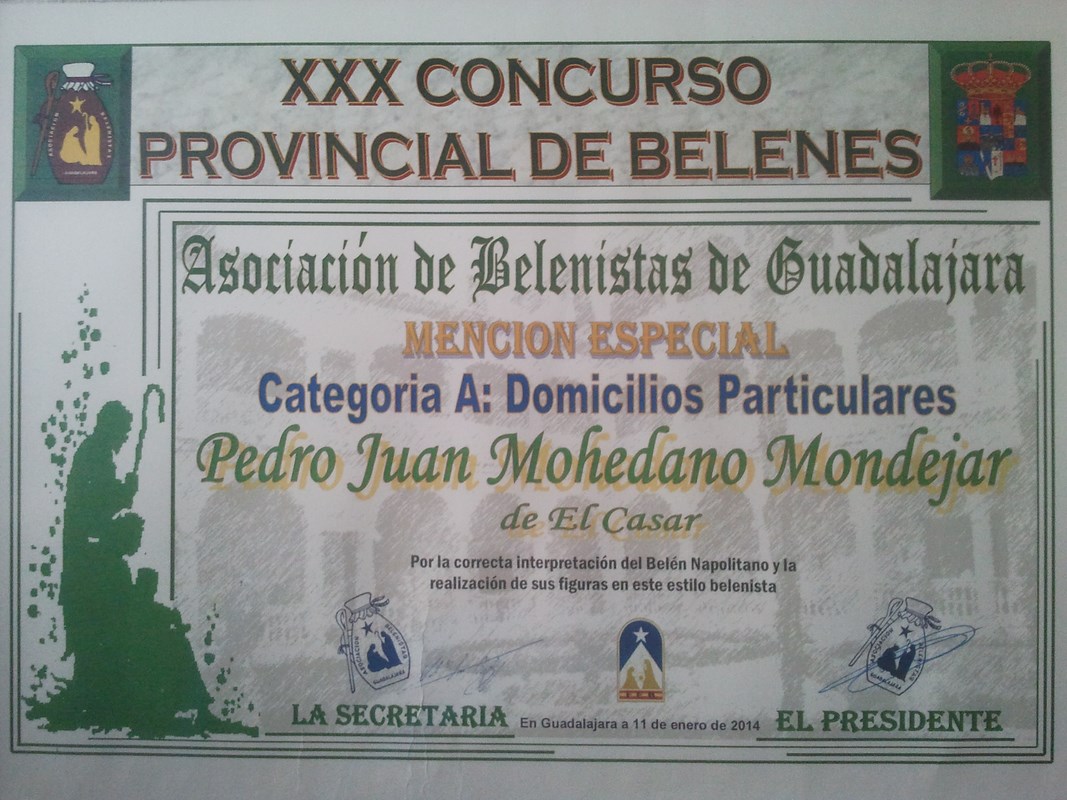 Aquí os mostramos una mención especial que nos ha sido otorgada por la asociación de belenistas de Guadalajara, que nos ha hecho mucha ilusión. Un saludo a todos.