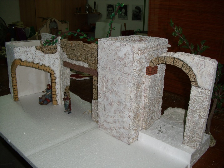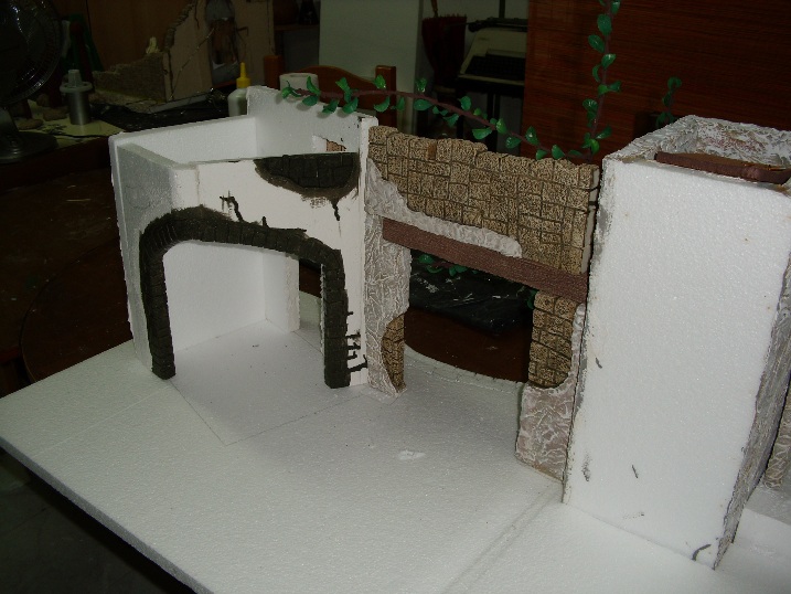 Textura paredes, vereis que cada una tiene una textura distinta eso es porque al expandir la escayola, cola escayola, etc (yo utilizo lo que se usa para poner baldosas, tarda en secar mas que la escayola), bueno lo extiendo con una paletina de la utilizadas para pintar con oleo y es cuestion de expandirlo mas liso o menos, eso segun lo voy haciendo decido si lo hago mas liso o con rugosidades.