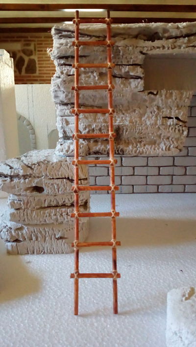 Hola a todos, os dejo una foto de una escalera realizada con palillos de madera e hilo.