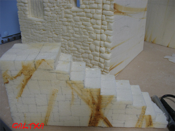 utilizaremos un poco de lija para desgastar los escalones para dar el efecto