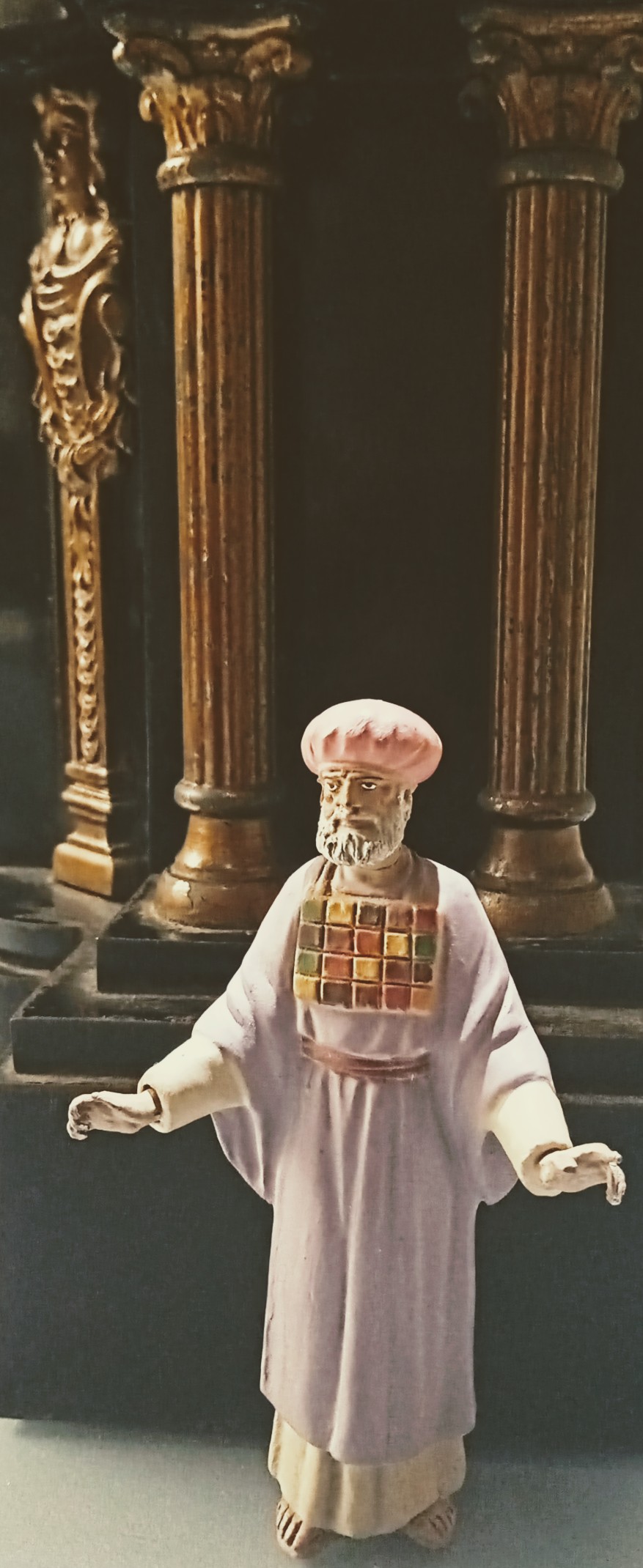 En cuanto a: "Y aquí la interpretación del Sumo Sacerdote por los Castells en 8 cm. Es una figura que para los esponsales no sirve, es del grupo de Jesús con los doctores de la Ley."...