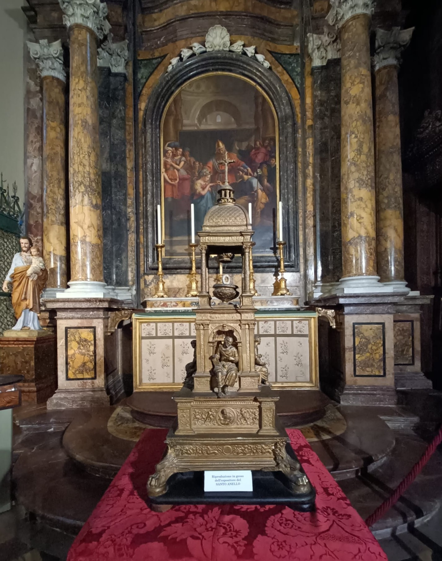 Capilla de la Catedral de San Lorenzo en Perugia, con el cuadro de Wicar y la reproducción en yeso del Santo Anillo.