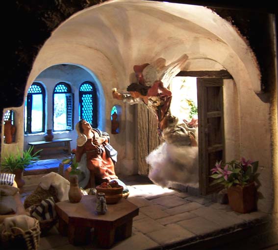 Creo que mostrar estas imágenes de dioramas puede estar bien como mera exhibición, pero no aporta ningún valor ni enseñanza para aquellos que deseen recrear la escena de la Anunciación a la Santísima Virgen María. Lo digo porque veo que se incluyen de todo, tanto cosas buenas como malas y nefastas, sin ningún comentario que las acompañe. De esta manera no se instruye, ni se informa ni se genera debate. Un ejemplo.