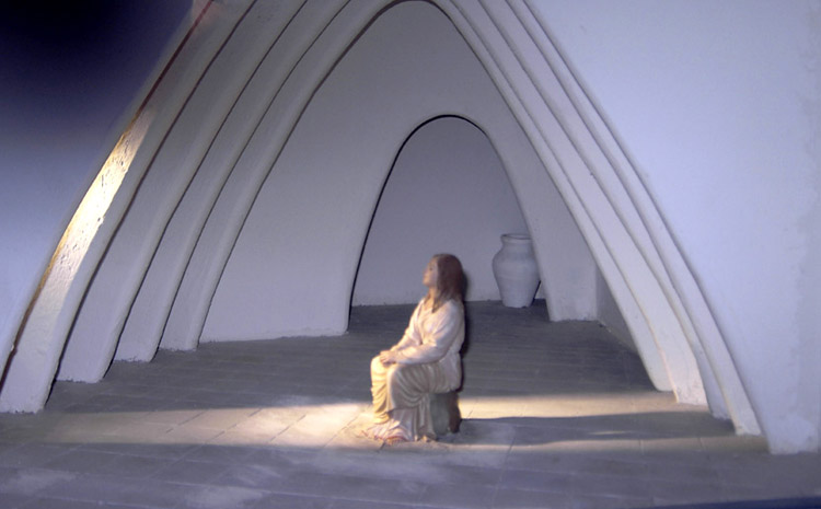 diorama de Porta, que compositivamente, no hay ninguna duda, ¿transmite realmente el evangelio de Lucas? Si a eta escenografía le cambias el titulo y por ejemplo “Mujer en el interior de su casa con sensación de estrés, concepto de salud mental.“