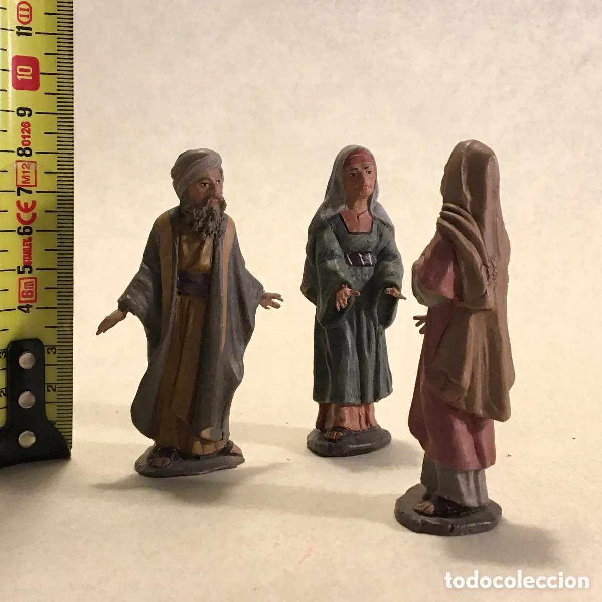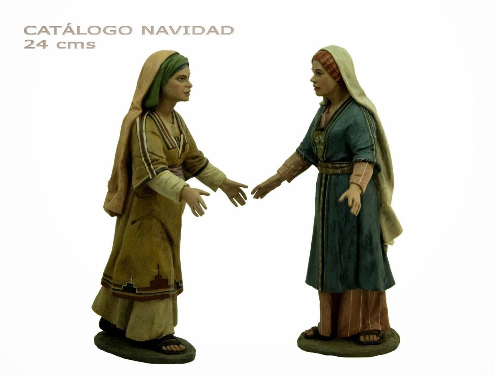 Aquí, las figuras de Castells en 20 para la Visitación, que ya habéis visto colocadas en un diorama. La Virgen está bien, porque no se le ha de notar el embarazo, Isabel está muy viejita pero nada embarazada, pero igual vienen de otro lado (la Virgen sirve para la Anunciación y yo la uso mucho como pastora adorando). Os adjunto el Zacarías habitual, pero hay otras figuras que también sirven, como el pastor de luenga barba que os presento en versión mielero, pero que Castells lo ha representado sin nada (y sirve como Zacarías) o con pavos, pollos, etc.