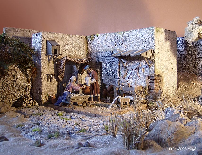 Les presento mi escena de La Sagrada Familia en un atardecer con figuras de José Ángel Oviedo.