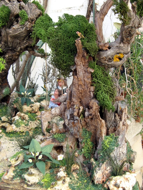- Y por ultimo el musgo que se ve por el suelo es serrín pintado de verde pegado con cola. Y una vez seco le di unos toques de amarillo.