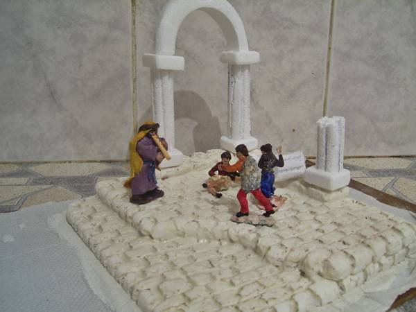 Hola Moni, los soldados -niños músicos geniales, ya lo sabes, y en cuanto al avance de la escuela pues va genial, es suelo me gusta mucho y el color que habeis dado me parece muy bonito y real, las columnas caidas y el arco va muy bien, está muy logrado ¿ya es definitivo? o vais a variar algo más; supongo que pondreis algún árbol o plantitas para animarlo aún más, espero verlo terminado del todo. UN abrazo.