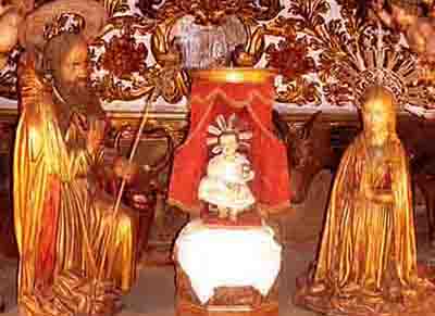 En 1634, se anotan pagos en la iglesia a Sebastián de Matallana por dorar la imagen de Santa Ana. No se sabe si sería un policromado completo o retocas. Lo cierto es que la policromía de ambas imágenes es de gran calidad, con distintos motivos vegetales y algún grutesco de amplio trazado entrelazado a punta de pincel. Los esgrafiados se reservan para las tocas de las dos imágenes. De igual manera son de destacar los motivos pintados en las orlas de manto y túnica de la Virgen sobre fondo rojo