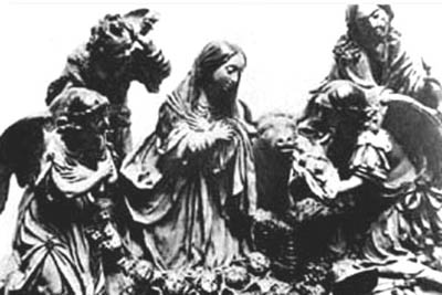 Así pues, el barroco toresano crea una de las más encantadoras interpretaciones del tema, aunque no cabe duda de que esta manera escenográfica de mostrar el tema cristiano tiene su antecedente en Juan de Juni, a quien en principio se atribuyó.
