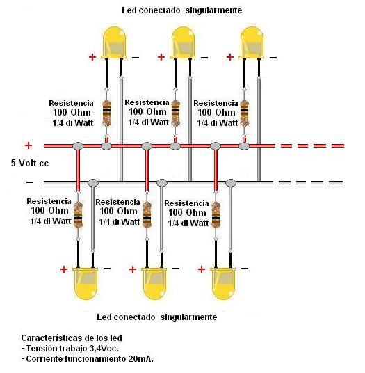 En cada dibujo ( abajo, a la izquierda) tienes las características de los leds: