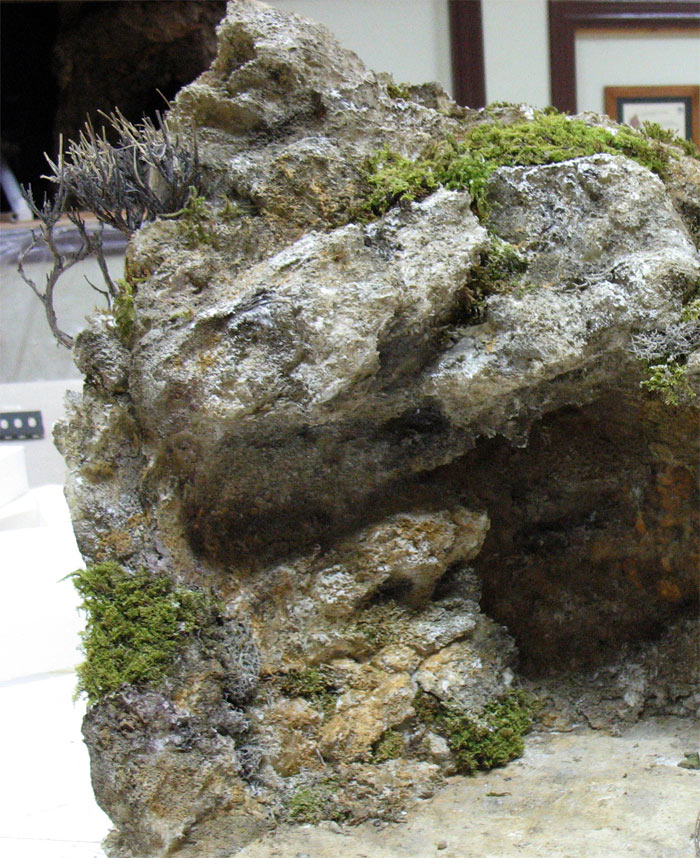 La foto de la cueva la puse por que en ese momento se estaba realizando ese belén ,pero normalmente la espuma la utilizamos como elemento de relleno ,simulando rocas y montañas .
