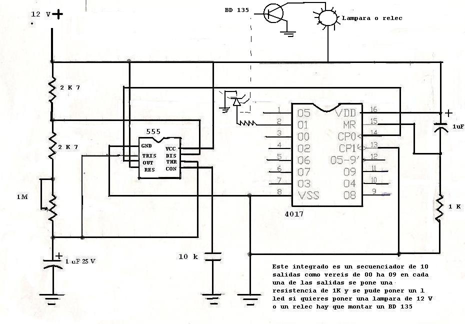 aqui pongo un secuenciador hecho como dice iñigo un 555 y 4017 son 10 salidas las que controla y otro que llava ademas 4027 oara enclavar las salidas
