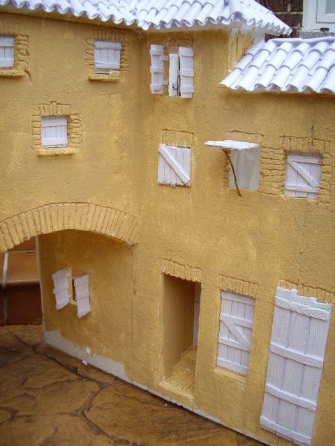 Me dará tiempo porque este año lo quería poner en blanco, tenemos una tienda de regalo y decoracion y es toda blanca... Gracias a todos. Paco, las medidas, son un poco a ojo, mucho dibujo, y si se me hacia grande pues cortaba y si lo veia pequeño pues a cortar de nuevo... lo real son los monumentos del pueblo, las casas que rellenan huecos, son inventadas. Utilizo todo tipo de porex, las tejas, del azul, el caro, y el resto pues lo que voy encontrando de los embalajes de los muebles, coste cero. Repito las gracias.
