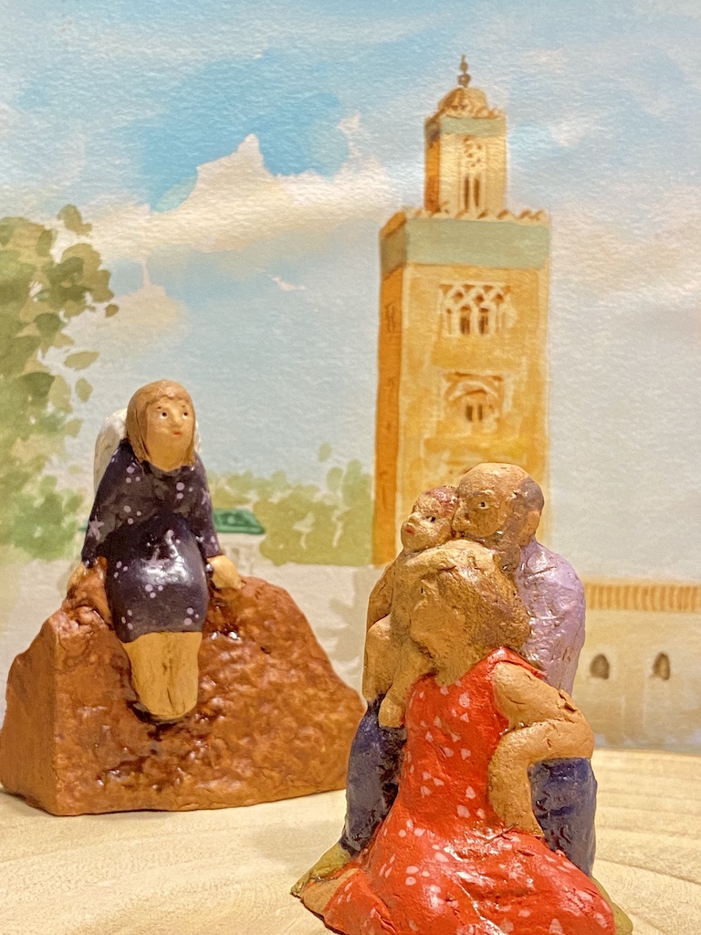 Esther modela las figuras y Laura las pinta. Son figuras contemporáneas tanto en su forma como en su temática. Me encantan, son el futuro del belenismo.