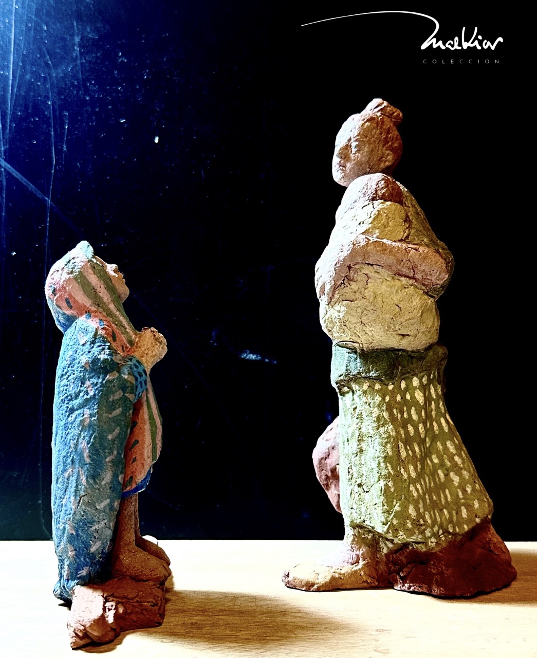 Así han denominado Ester Font y Laura Baldrich a estas dos nuevas figuras para estas Navidades, la abuela y el abuelo ... versión en pequeño formato [el de Laura y Ester], del molde, del Silvano de los primeros fríos... ahí las tenemos, contenidas en el espacio, aún asidas a la mano que las creó, dispuestas a formar parte de una escena tierna de Navidad, de un rincón del hogar, de una ventana abierta a páginas de evangelio escritas en el siglo XXI, dando sentido a la grandeza de lo pequeño... modeladas a punto de ser insufladas por la vida que recrean detenidas en el barro y la policromía...
