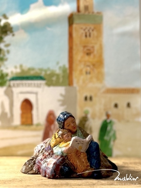La primera es un homenaje a la lectura , una estampa íntima y universal. Es la imagen de la transmisión, de la sabiduría acunada entre brazos. En ella se condensa el amor sabio, aquel que entiende que el conocimiento es el primer manto de protección. La figura es un eco de la verdad: “...quien sabe ama, quien ama protege…” (Sabater Pi). Es el cuidado que se le ofrece al alma, a la inteligencia en formación, al viaje inmenso que un niño puede emprender sin moverse del regazo. Es un faro que nos invita a poblar nuestro pesebre con el valor incalculable de la educación y el respeto.