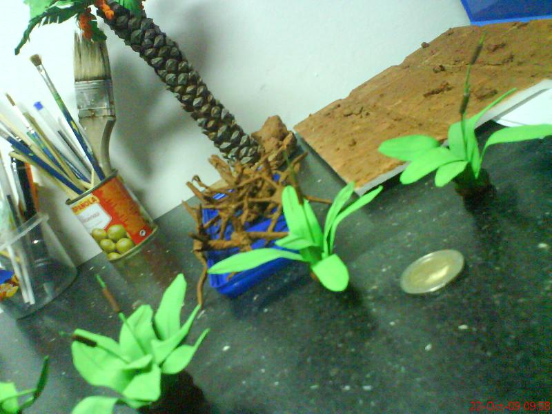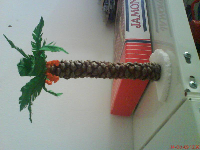 si el tronco costo, pero creo que le pondre hilos paraque salgan como las palmeras de verdad. como pintarias las hojas de los juncos gracias por ser tan despiadada y darme tus consejos y sigo haciendo hojas para la palmera un saludo (viste que quite el mapa para hacer la foto para no tapar tu pais) jajajaja .