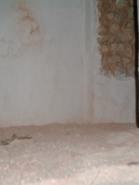 5º Si la casa tiene desconchones, antes de las dos ultimas manos le doy a los bordes de los desconchones con pintura verde muy aguada y marron oscuro muy aguado asi como a las zonas de las esquinas para dar sensación de humedad y profundidad.