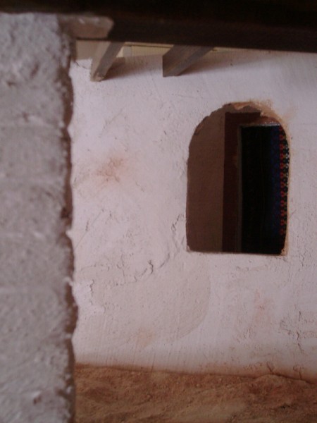 Belenpablo, son cuadrados de conglomerado de madera gastados con una lima, pegados uno encima del otro y enyesados con pincel.