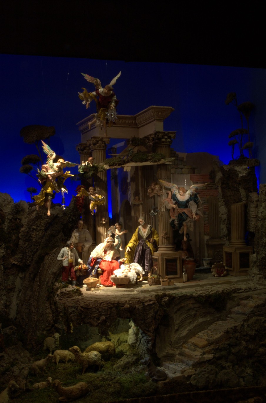 Según mi experiencia, para que la estrella se vea como esa luz en el firmamento, pues toma varios cabos de fibra optica, los unes con un poco de silicona líquida y llevas los cabos de forma que no se noten en el belen, y le pones al final en una cajita de cartón la luz azul que tienes de idea para que tu estrella destaque con el color entre otras del cielo que hagas.