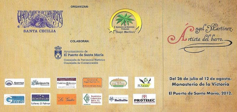 Del 25 de julio al 12 de Agosto de 2012 se celebrará una exposición sobre el escultor Angel Martinez en el Monasterio de la Victoria del Puerto de Santa María (Cádiz)...promete ser muy interesante