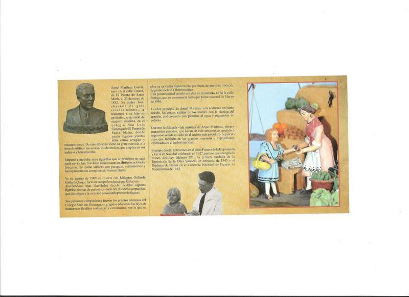 Aunque tarde, también decir que en 2010 se inauguró la definitiva ubicación del busto del artesano y belenista Angel Martínez en su original emplazamiento de la Plaza Juan Gavala de El Puerto de Santa María, en la plaza más cercana a su taller http://noticias.11500elpuerto.es/2010/12/29/inauguracion-busto-ange...