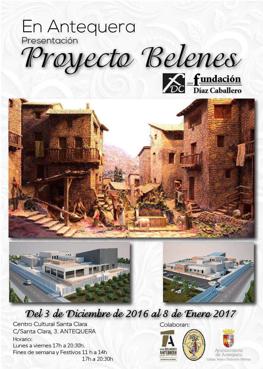 . Os remito el cartel anunciador de la próxima exposición de obras belenistas en Antequera organizada por la "Fundación Díaz-Caballero". Después de verla in situ puedo decir que una gran puesta de largo y antesala de lo que será el Gran Museo de Belenes de Mollina. Una cuidada selección de obras para el disfrute y deleite de los visitantes y donde el pasado, el presente y el futuro del belenismo se encuentran. Una gran cita con la cultura, el arte y la tradición que no os podéis perder.