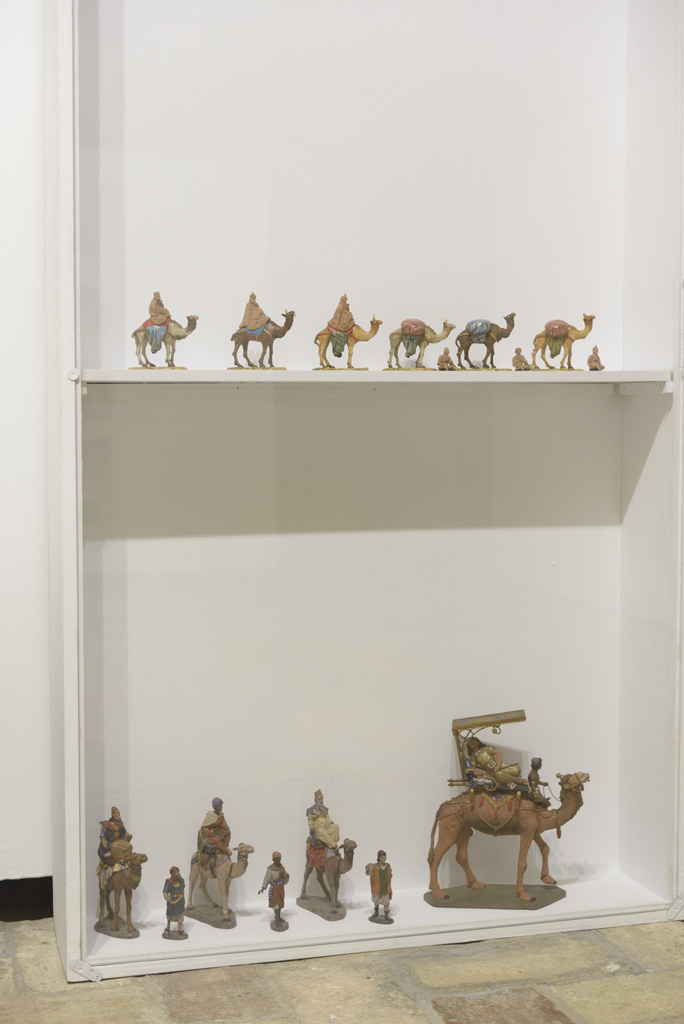Ignacio Fernández (Tula). Adoración de Reyes de Hermanos Castells, Caravana de Reyes de Olot y 4 dioramas con figuras suyas (llegada a Belén, Adoración de Reyes, Noche de Reyes y Regreso de Belén).