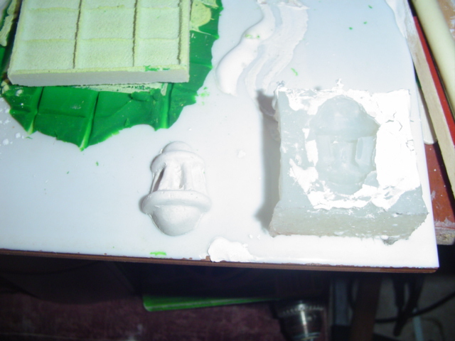 3º Vacie escayola y consegui un primer molde, una vez seco lo limpie y despues rocie con aceite para vaciar en el.