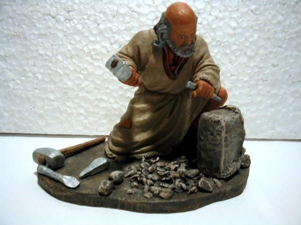 Yo doy un diez a Daniel en los cuatro puntos que he indicado, me gusta mucho su visión refrescante del mundo bíblico y la calidad de sus esculturas y me encanta lo bien pintadas que están las figuras. Aquí hay un buen compromiso entre el artista y el cliente, las eventuales ventajas que produce al artesano la utilización de la resina en vez del barro (creo que, en definitiva, es menos tiempo en el proceso) son aplicadas en beneficio del cliente, puesto que ese "excedente" de tiempo se utiliza para mejorar la manipulación de la figura, para hacer el original más detallado y para poner más tiempo en su pintado. El resultado, el producto, es inmejorable, puesto que a un precio muy correcto (unos sesenta euros) tenemos una figura excelente.