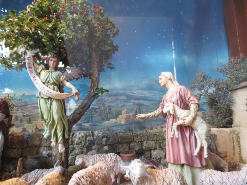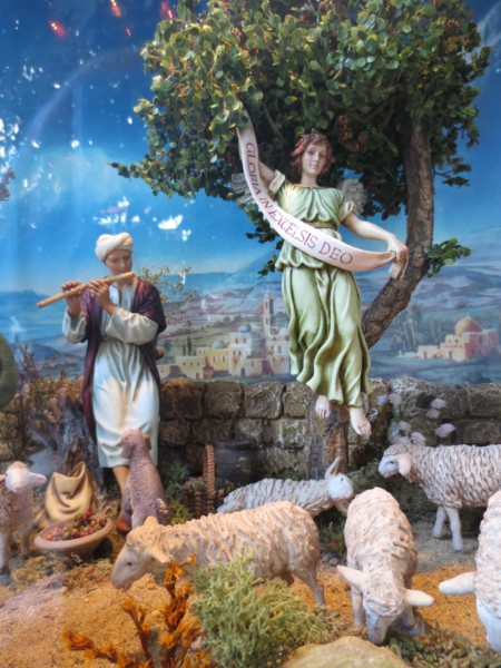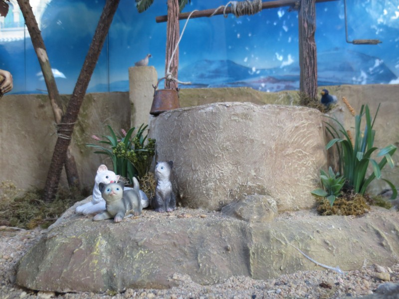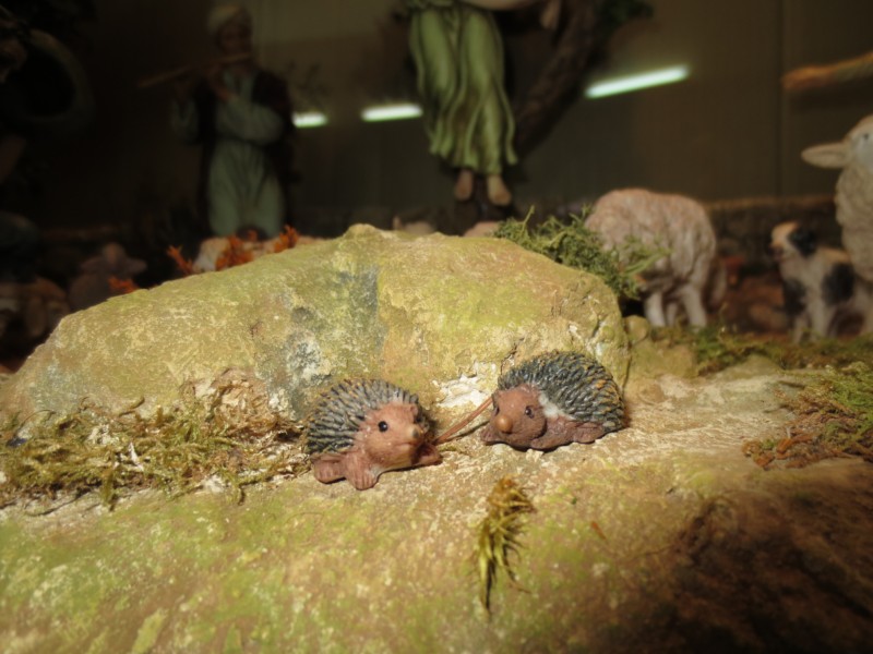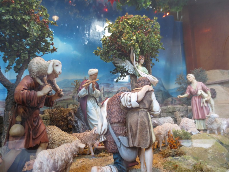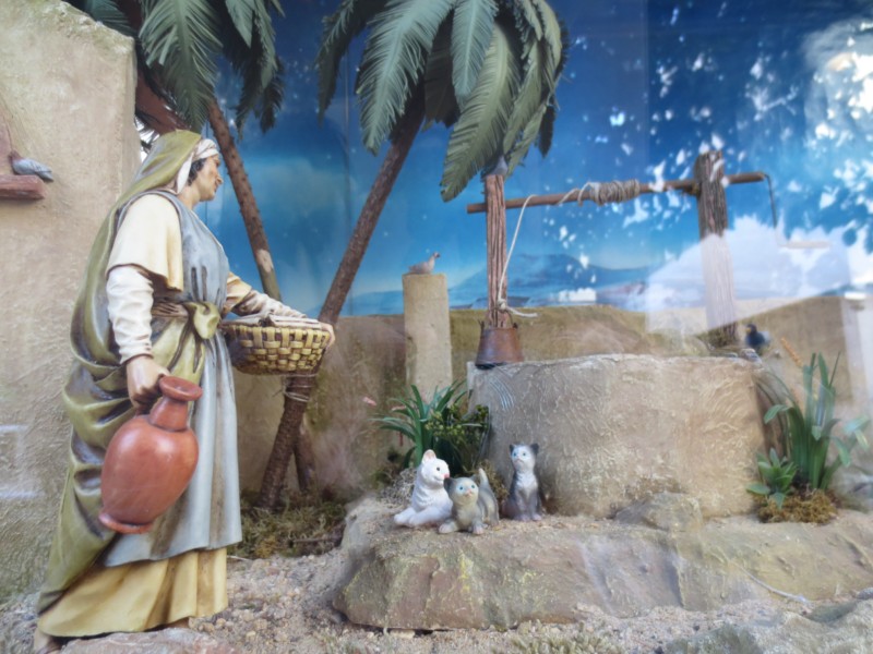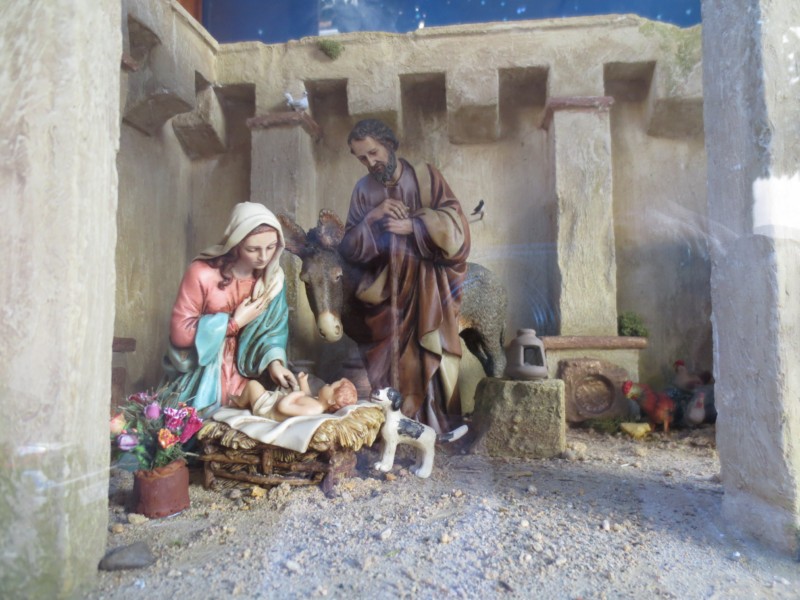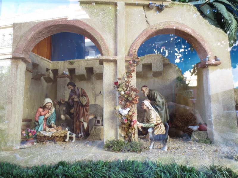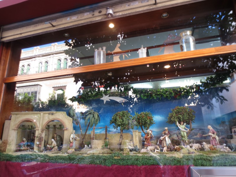 en pocas palabras : este pesebre del escaparate de la farmacia es muy hermoso tan solo de figuras como de construcciones , espléndido , tienes verdaderos dedos de oro .