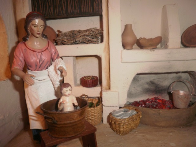 Uauuuu!!amiga Gloria, y yo sin ver hasta ahora estas joyitas de casas, realmente estan preciosas y bien hechas, los detalles del interior son realmente fantásticos parecen casa reales y tan cálidas con ese fuego encendido. Las figuras también muy bonitas, el niño en la tina está soberbio.
