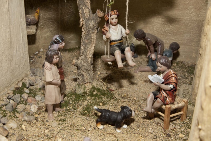Hola Gloria, un belén precioso, lleno de detalles muy originales y bonitos, y unas escenas que me encantan, como el corral del buey. las figuras son muy bellas, pero los niños que tienes todo juntos con un columpio son preciosos.