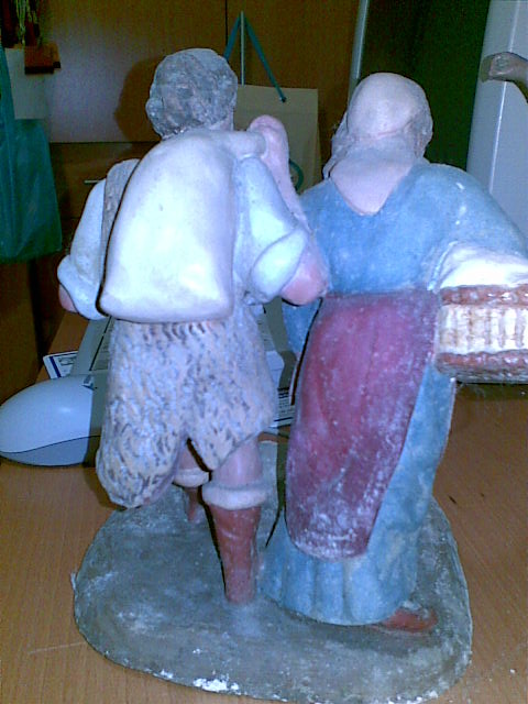 Pero continuo con que seria bueno hacer un estudio de los talleres que desaparecion de Olot muchos de ellos se dedicavan hacer precisamente figuras de belen no eran tant digamos de inmagen religiosas y tambien, alguno de mi quinta se acordara, de unos caballos que tenian las abuelas de yeso y otras mil figuritas de recuerdos y cosas asi. todos estos talleres la mayoria, fueron las otras victimas de los nuevos materiales, les paso algo parecido a lo de los artesamos de figuras de cachareria (que tenian su encanto, pues cada artesano tenia su estilo) no lo de ahora todo es de Oliver , Puig o Landi, el pastico y sus variantes , los mato.