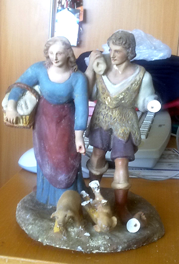 Haber puestos a ello yo intentaria conservar la identidad de la figuras es decir restaurarla tal como era, no deja de tener su encanto,mal del todo no esta,la pieza bien limpia y algun que otro retoque, con pintura ,o si hay manitas para ello repimtarla, Pero????