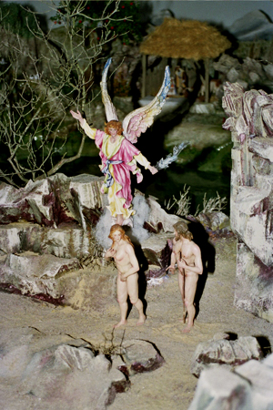Fue realizado por Pedro Ramirez Pazos, de quien son también las figuras (de palillo las de primer plano: ángel, Adán, Eva y demonio)