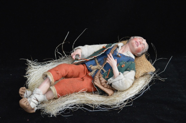 Pastorcillo durmiente para figuras de 38cm barro cocido policromado al óleo.