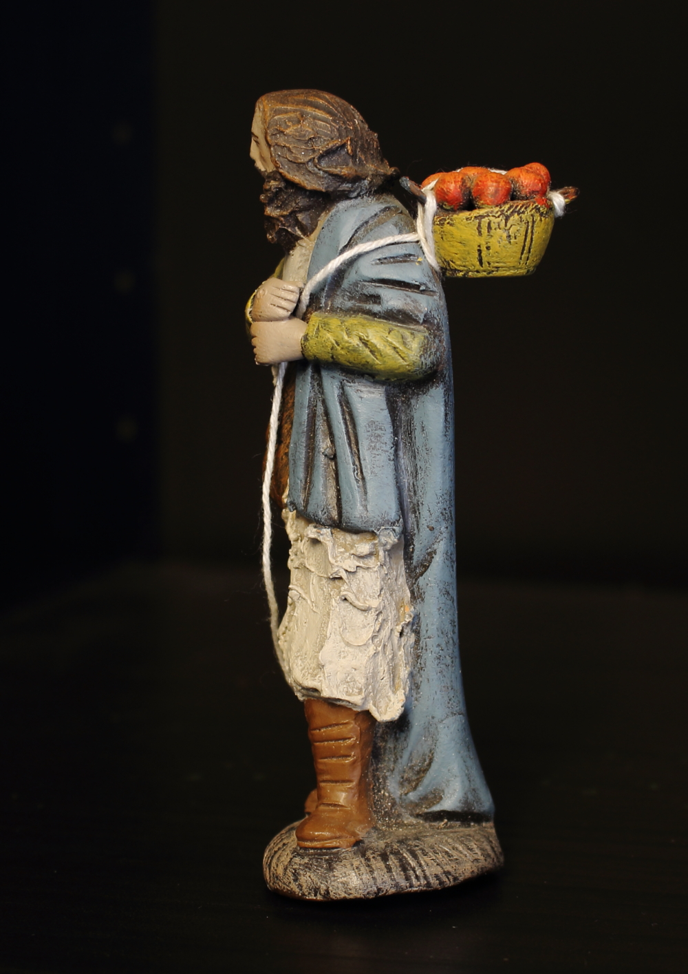 Pastor de camino con cesto de frutas, 11cm. - 25€