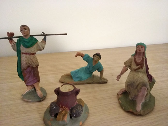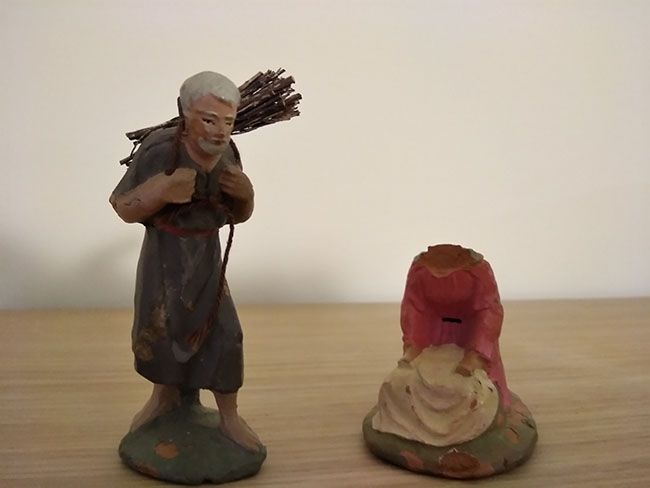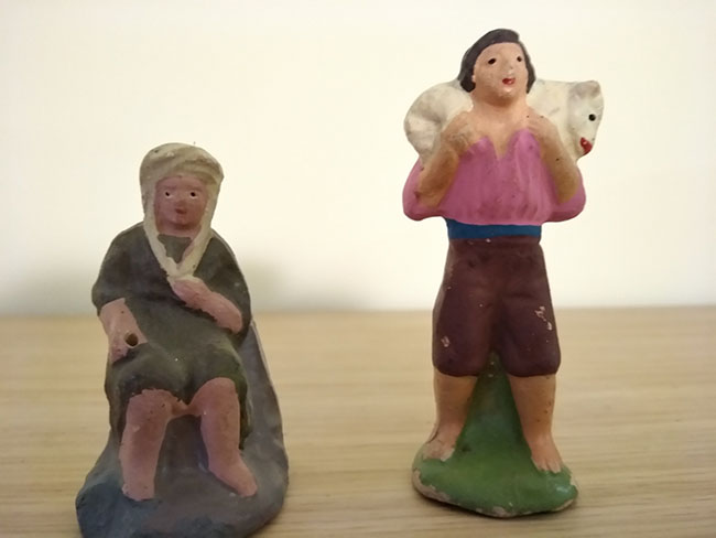 En segundo lugar, consultar la autoría de las figuras que incluyo a continuación. Si la conocen o es posible conocer. Comentar que estas figuras fueron compradas por mi madre, siendo una niña, hace unos 55 ó 60 años, con sus primeros "ahorros" y han formado parte de las navidades familiares desde entonces -sólo hay que verlas, parecen haber sufrido muchas batallas-.