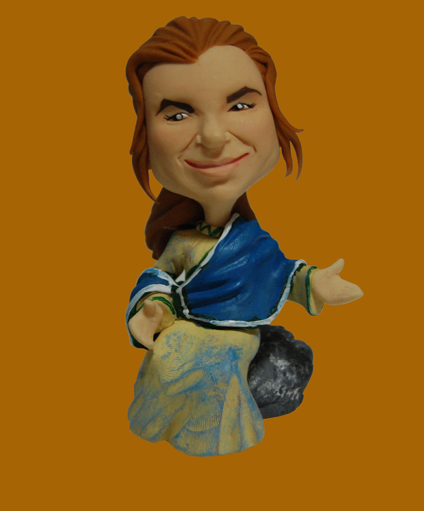 Nuestras figuras tienen una altura aproximada de unos 15 Cm. y pueden ser como comentamos con cuerpos Standard lo que nos permite venderlas a un precio de unos 50 € la pieza, o pueden ser modelos nuevos con lo que se modela tanto las caras como los cuerpos, en este caso el precio sería de unos 90 €. Para este último caso necesitamos que nos pasen unas fotos o diseños de los nuevos modelos que hay que preparar. Las figuras como se ve son con un estilo un poco caricatura.
