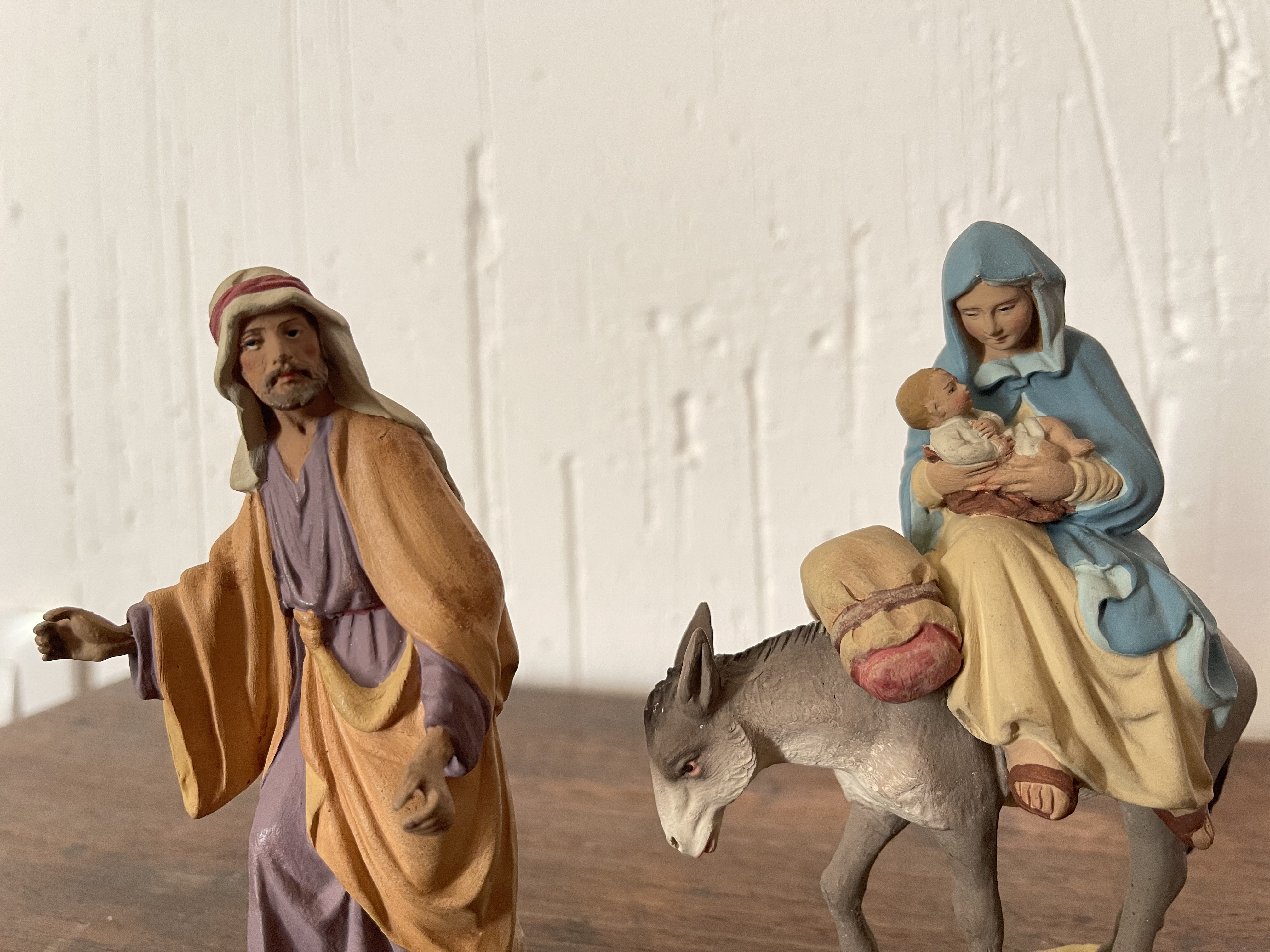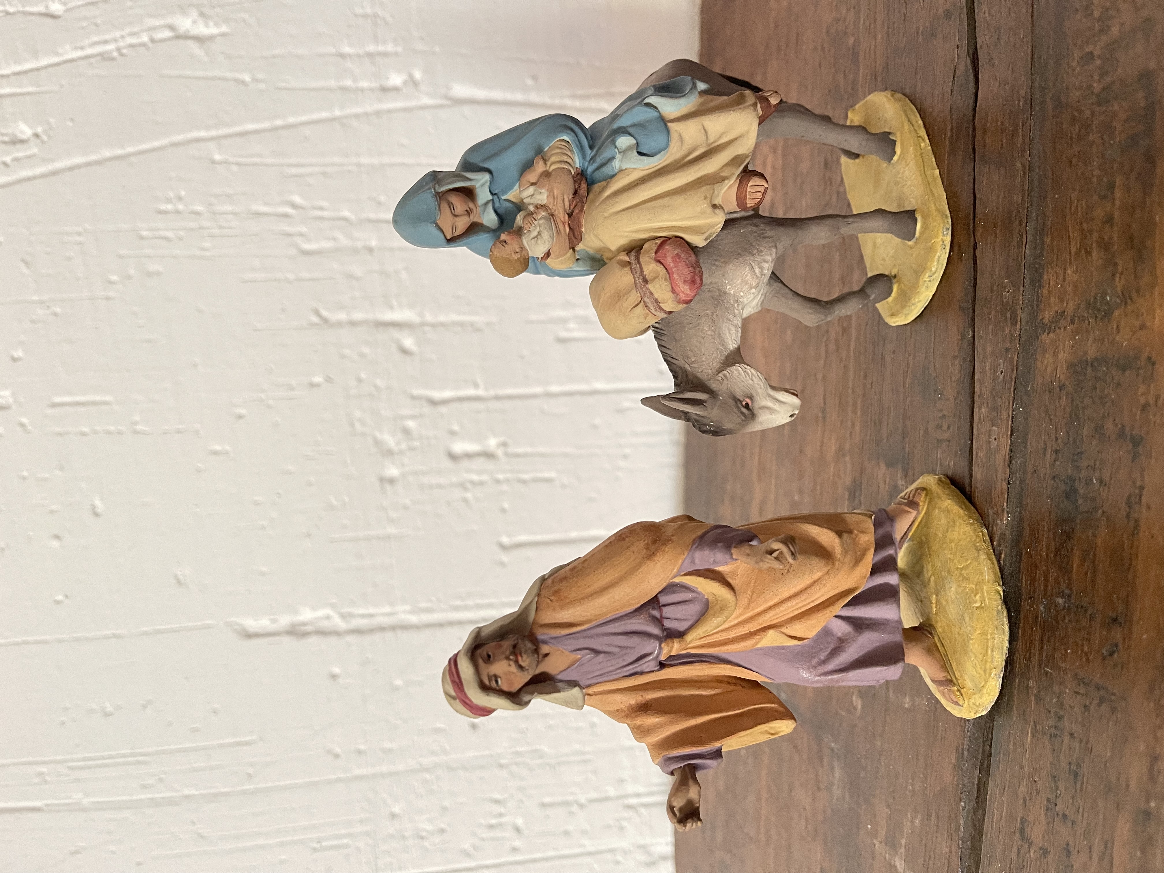 Dos conjuntos de piezas en barro cocido de firma Castells muy antiguo de la serie 12 cm. Perfecto estado. Huida a Egipto: 500€ Taller de Nazaret 900€ + gastos de envío