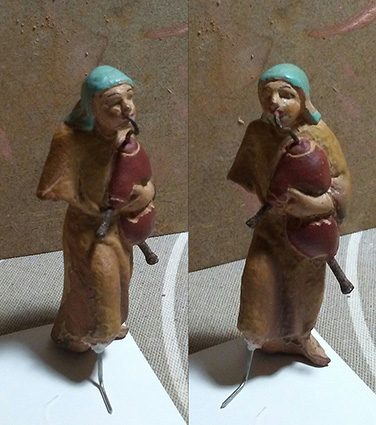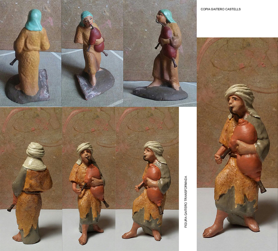 Mientras espero al secado de moldes(reyes), intentaré otro experimento con una copia de Castells, la original es el músico tocando la gaita, la copia aunque esta con el pie cambiado la modificaré para se parezca lo mas posible al modelo (fotos de la colección privada de Antoni).